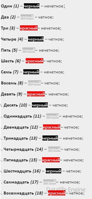 - на числа (1-6, 7-12, 13-18);