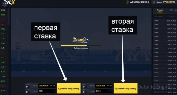 Эффективная стратегия игры в JetX: надежная и простая в использовании. Ее эффективность подтверждена более чем 2000 раундами и подкреплена математическим расчетом. Мы будем использовать обе ставки в каждом раунде, а также использовать функцию автоигры, чтобы избежать ошибок и реагировать на нужный коэффициент вовремя. Эта стратегия также позволяет первой ставке страховать вторую благодаря правильным значениям коэффициентов.