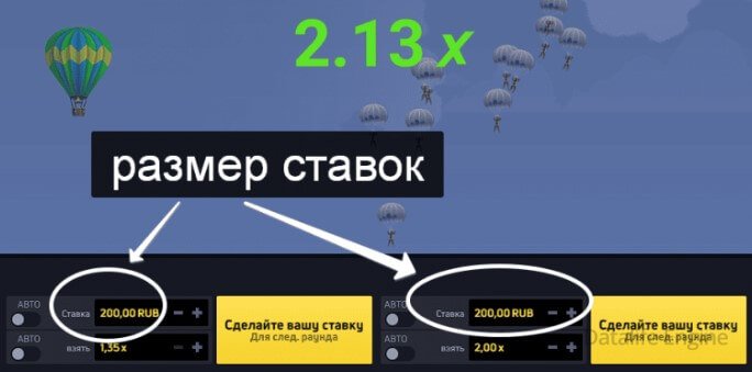 Старайтесь пролететь как можно дольше и при этом успеть забрать выигрыш до того, как самолёт взорвётся. Чем дольше летит самолёт – тем выше коэффициент выигрыша, но при взрыве самолёта вы потеряете всю ставку.