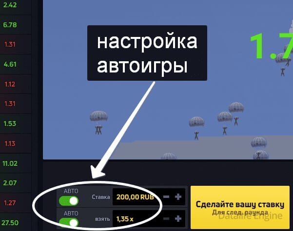 Также вы можете использовать “автоигру”, чтобы не делать вручную ставки перед каждым раундом. Этот режим позволяет настроить размер ставки и значение коэффициента, при котором будет происходить автоматическая остановка раунда и фиксация вашего выигрыша.