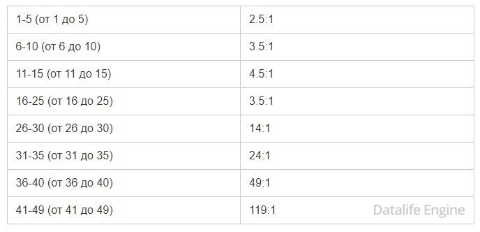 Таблица выплат: