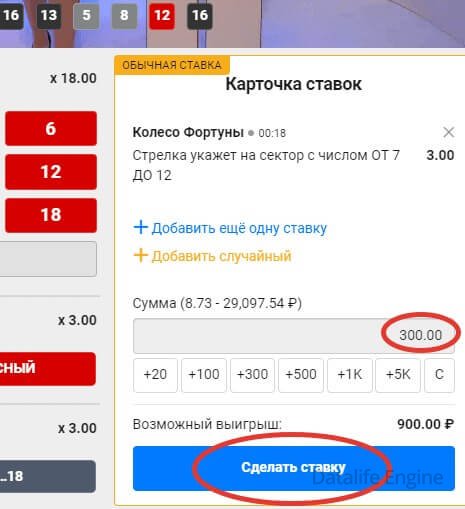 Сразу после выбора ставки и ввода суммы, вы сможете увидеть потенциальный выигрыш.