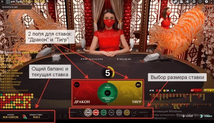 - Сделайте ставку на Тигра или Дракона (рекомендуем поставить на Тигра).