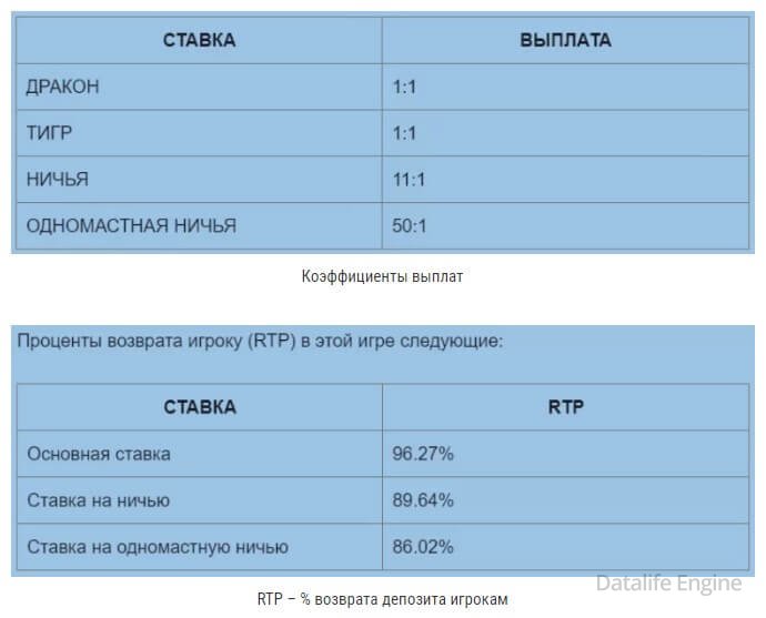 Игрок делает фиксированную ставку на одно из двух игровых полей: Дракона или Тигра. После того, как время на размещение ставок истекло, дилер раздает по одной карте на каждое поле - Дракон и Тигр.