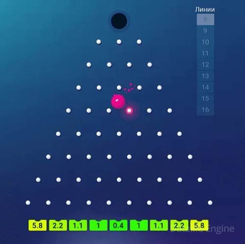 Величина вашего выигрыша зависит от того, в какую лунку упадет шар (в соответствии с коэффициентом, указанным на ячейке). Ячейки, находящиеся ближе к центру пирамиды, имеют более низкие множители, поскольку туда шарик падает с большей вероятностью. С другой стороны, лунки по краям обладают более высокими коэффициентами выигрыша, но шарик реже туда попадает.